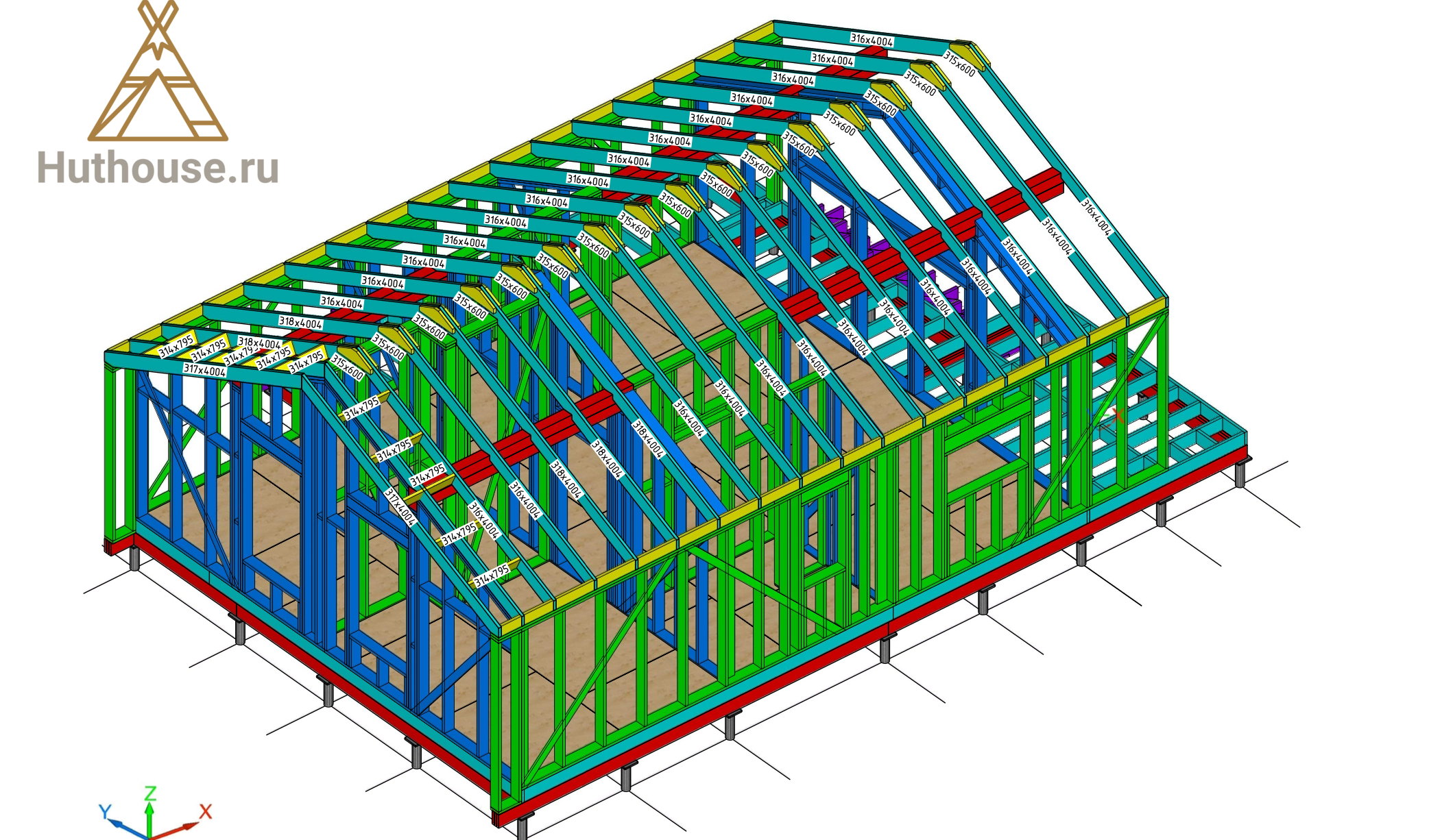 - Стропильная система: из сухой строганной доски 45х195 мм.