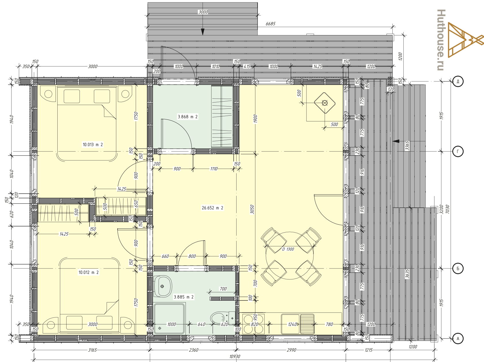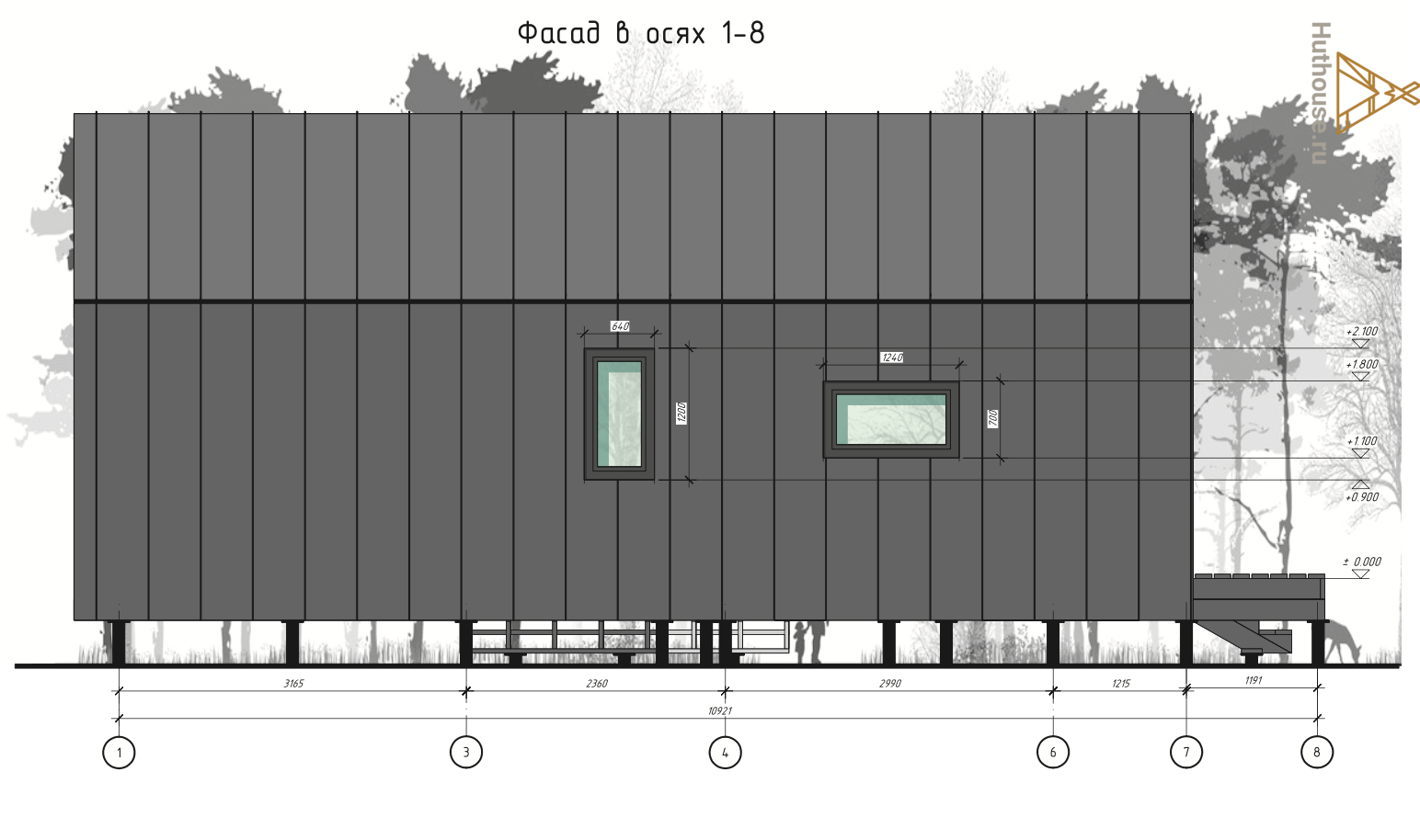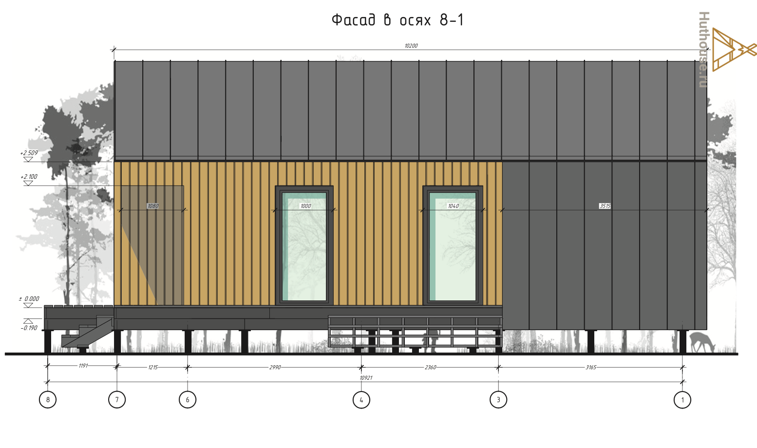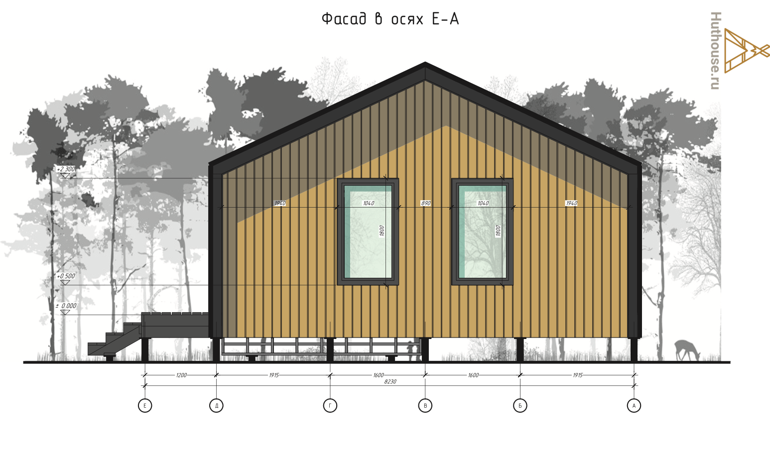 - Отделка фасада: из имитации бруса 20х145 мм.